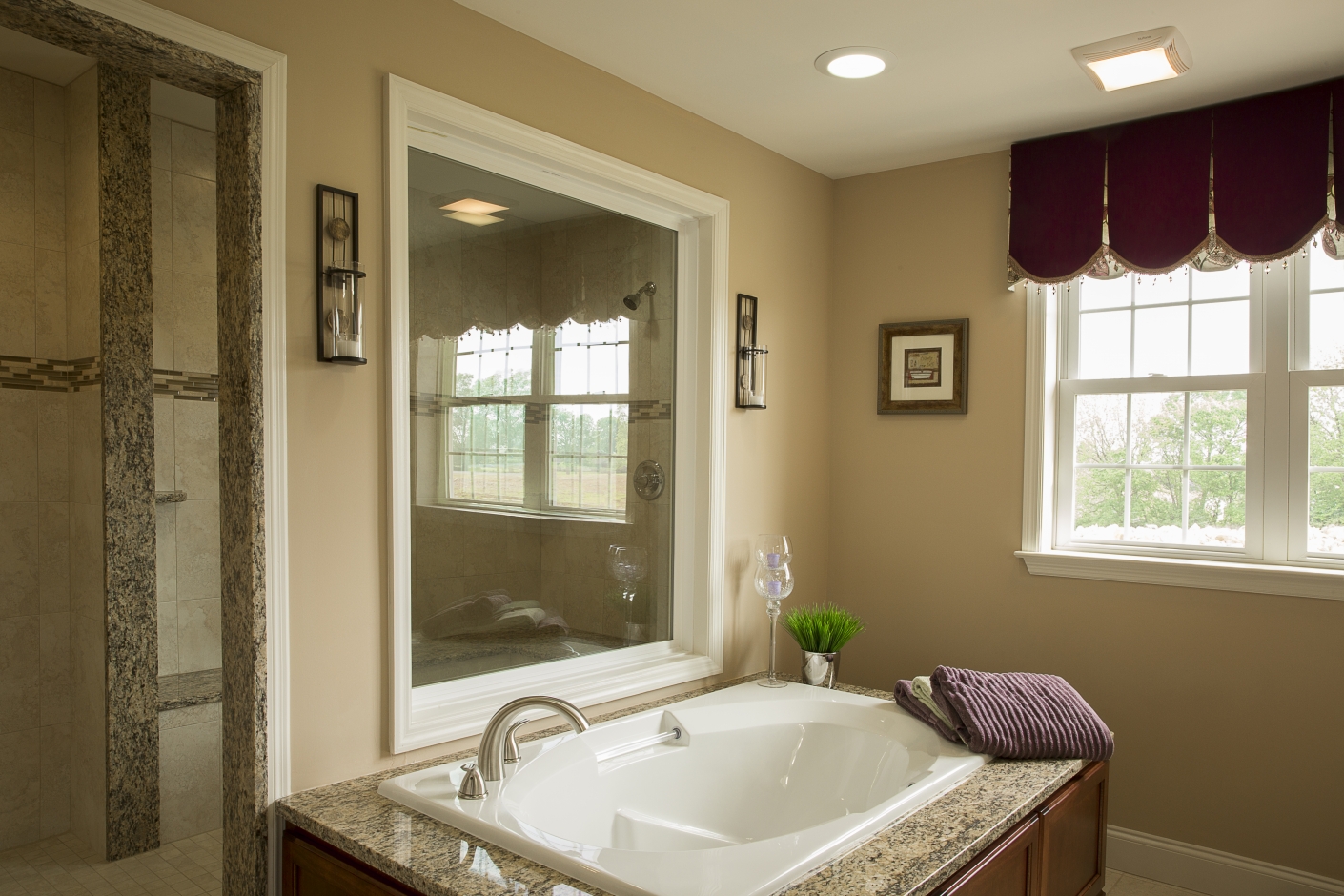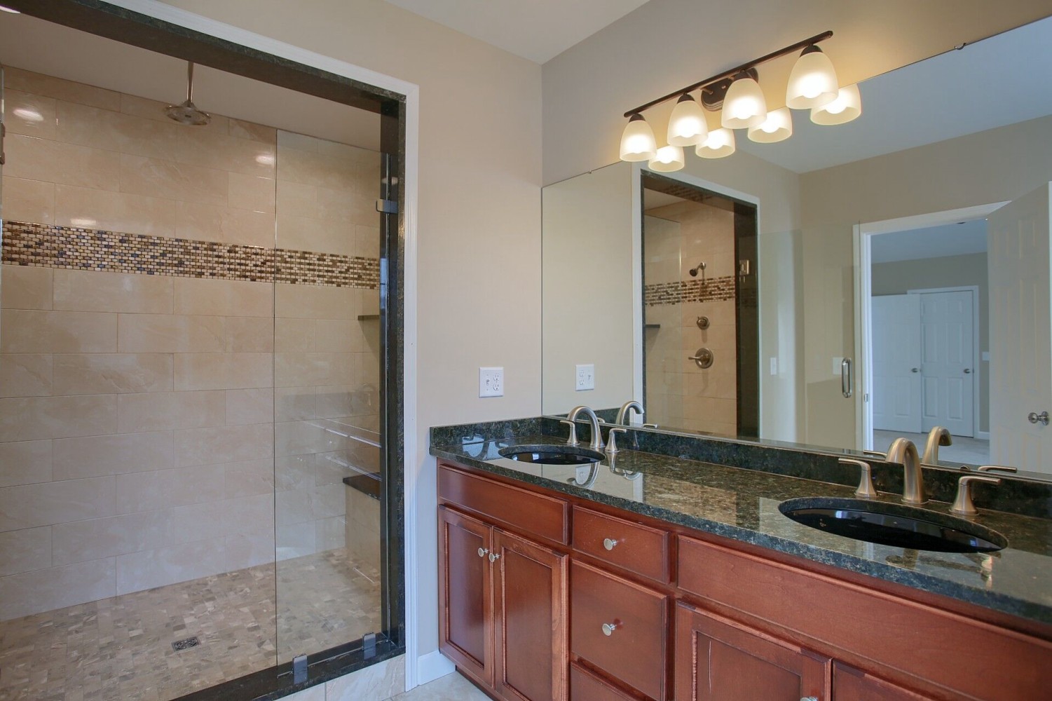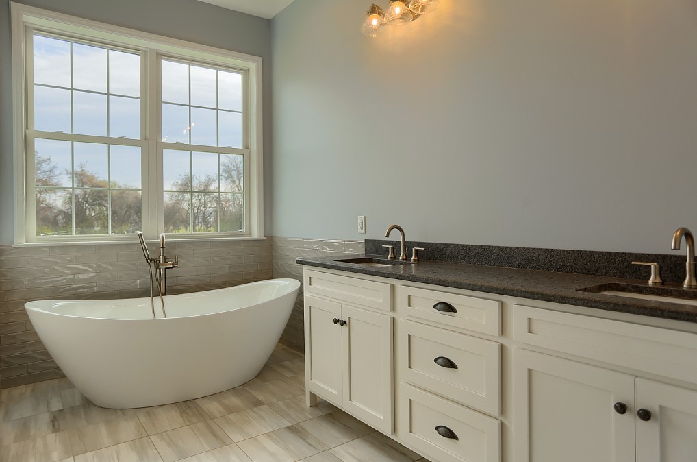 Browse through photos of our new home construction stylish bathrooms with desirable features such as soaking garden bathtubs, vessel sinks, custom tile showers, double vanities, sunken showers and more.