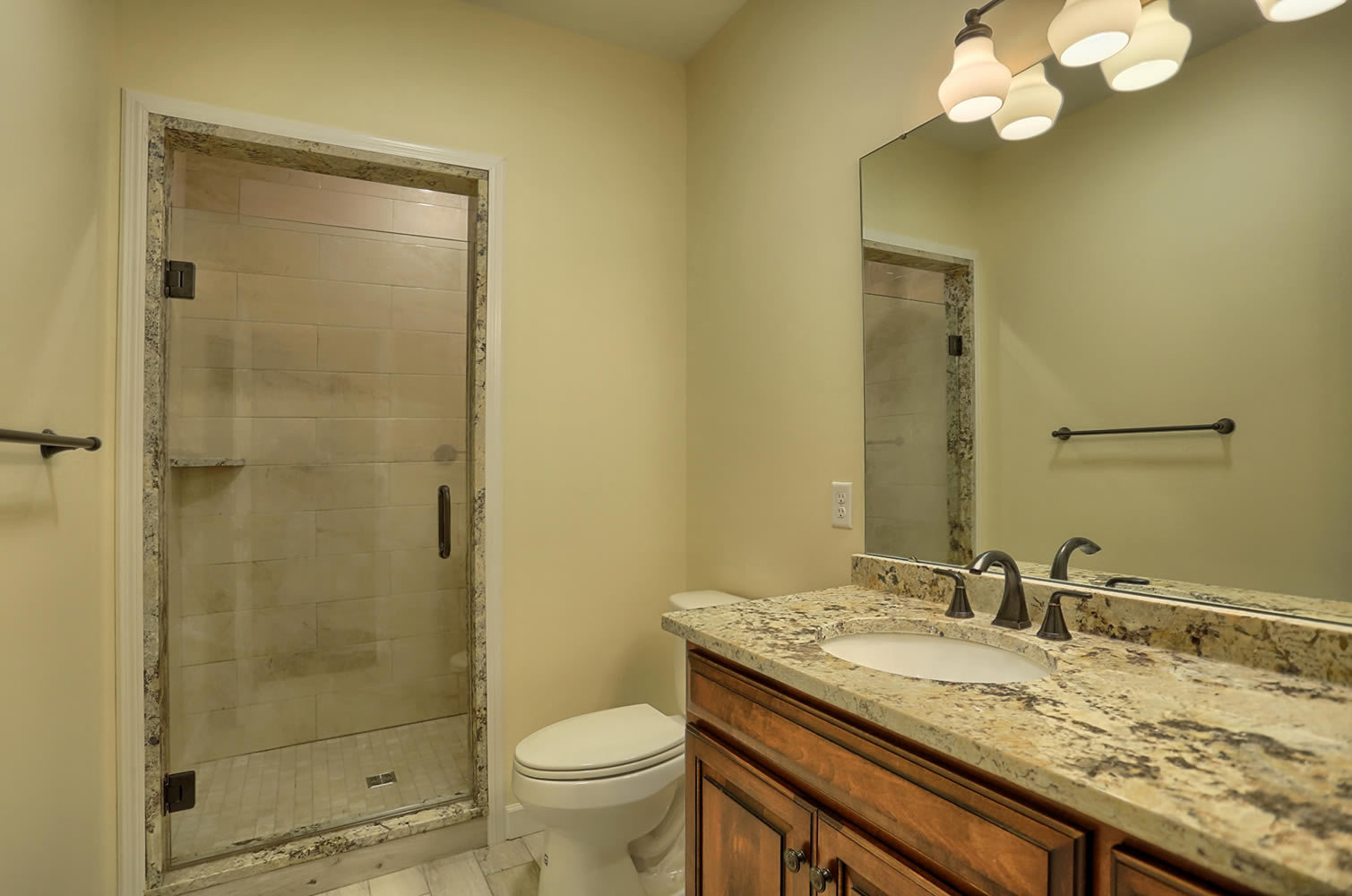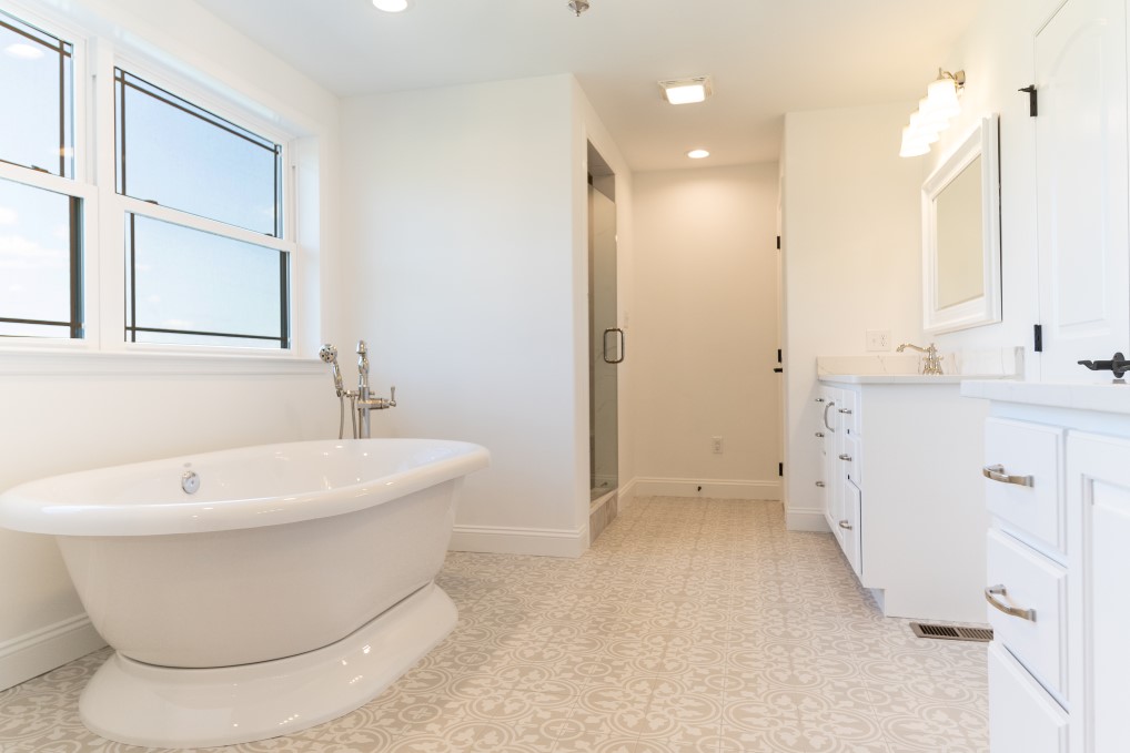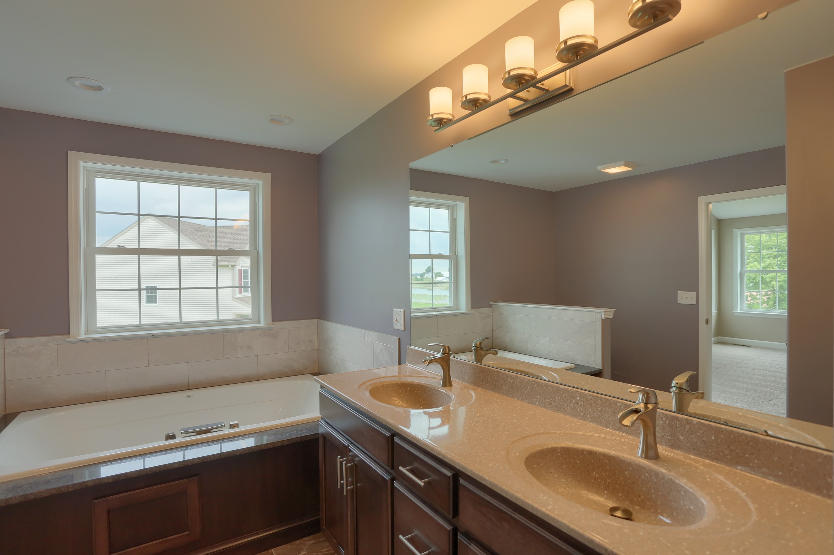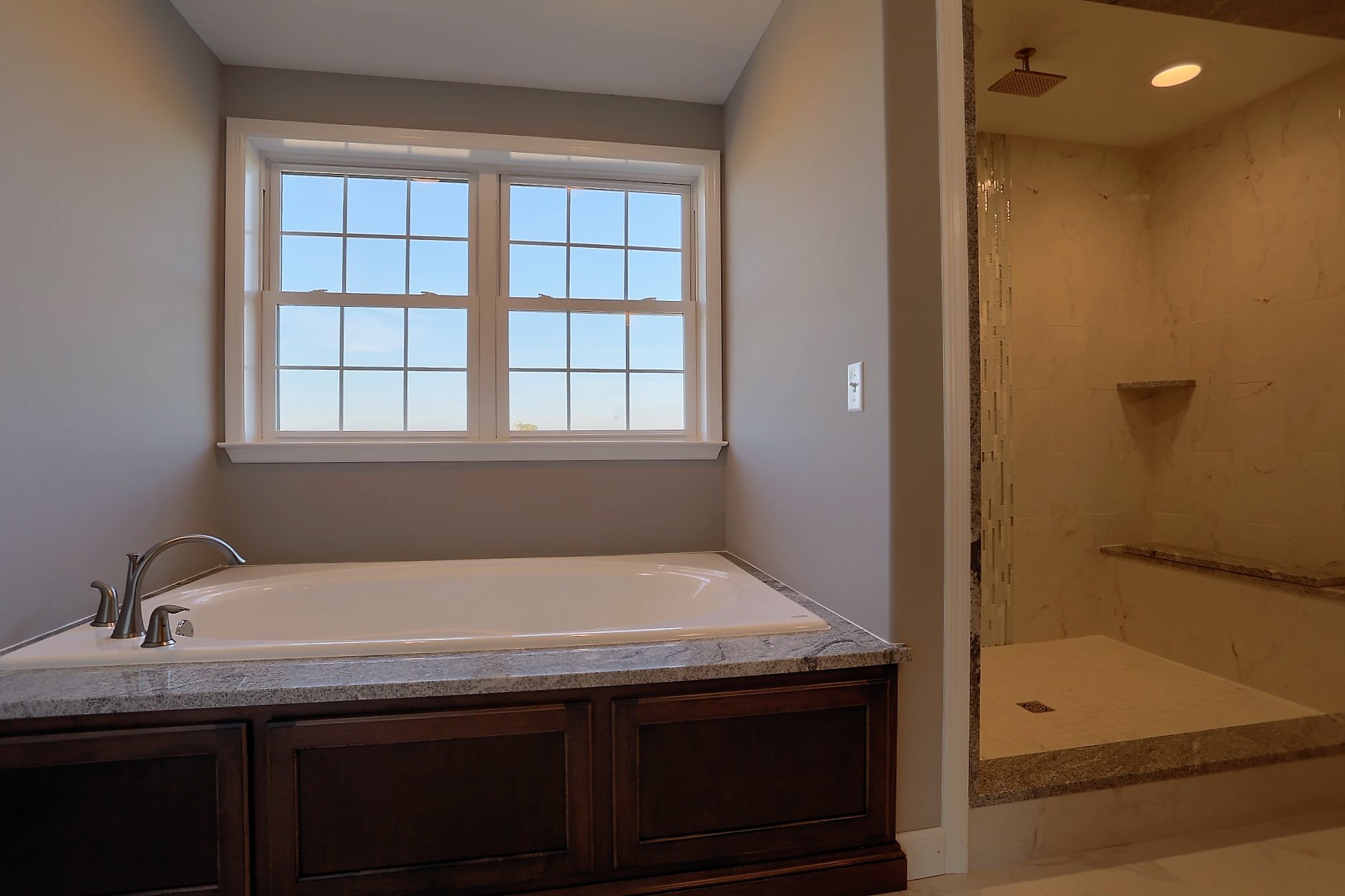 Browse through photos of our new home construction stylish bathrooms with desirable features such as soaking garden bathtubs, vessel sinks, custom tile showers, double vanities, sunken showers and more.