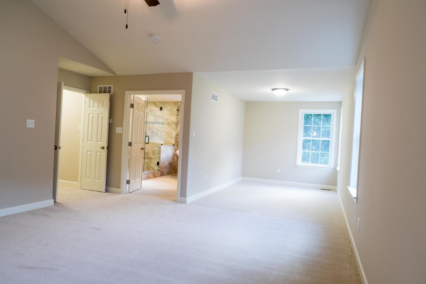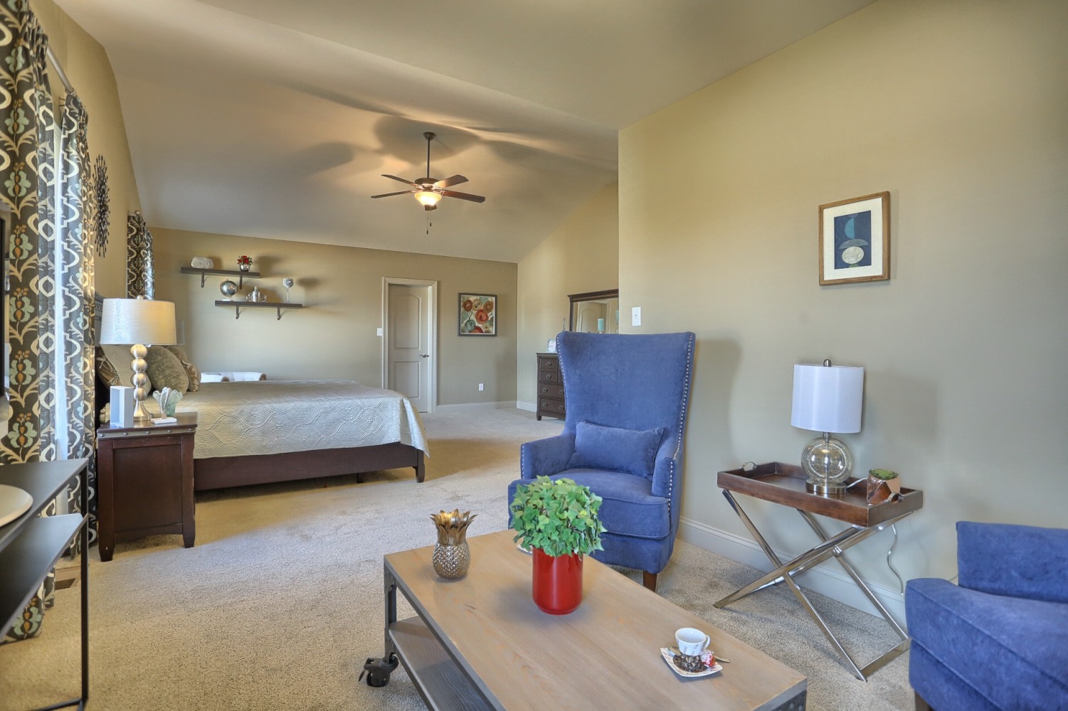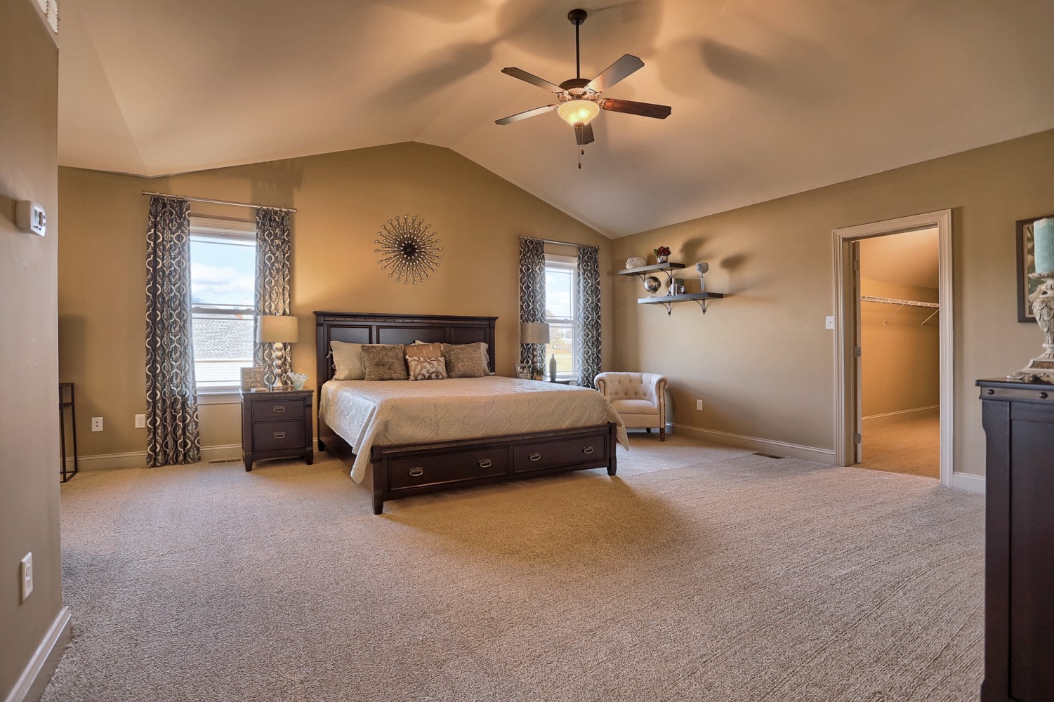 like first floor master suite, sitting area, walk-in closet, vaulted ceiling,