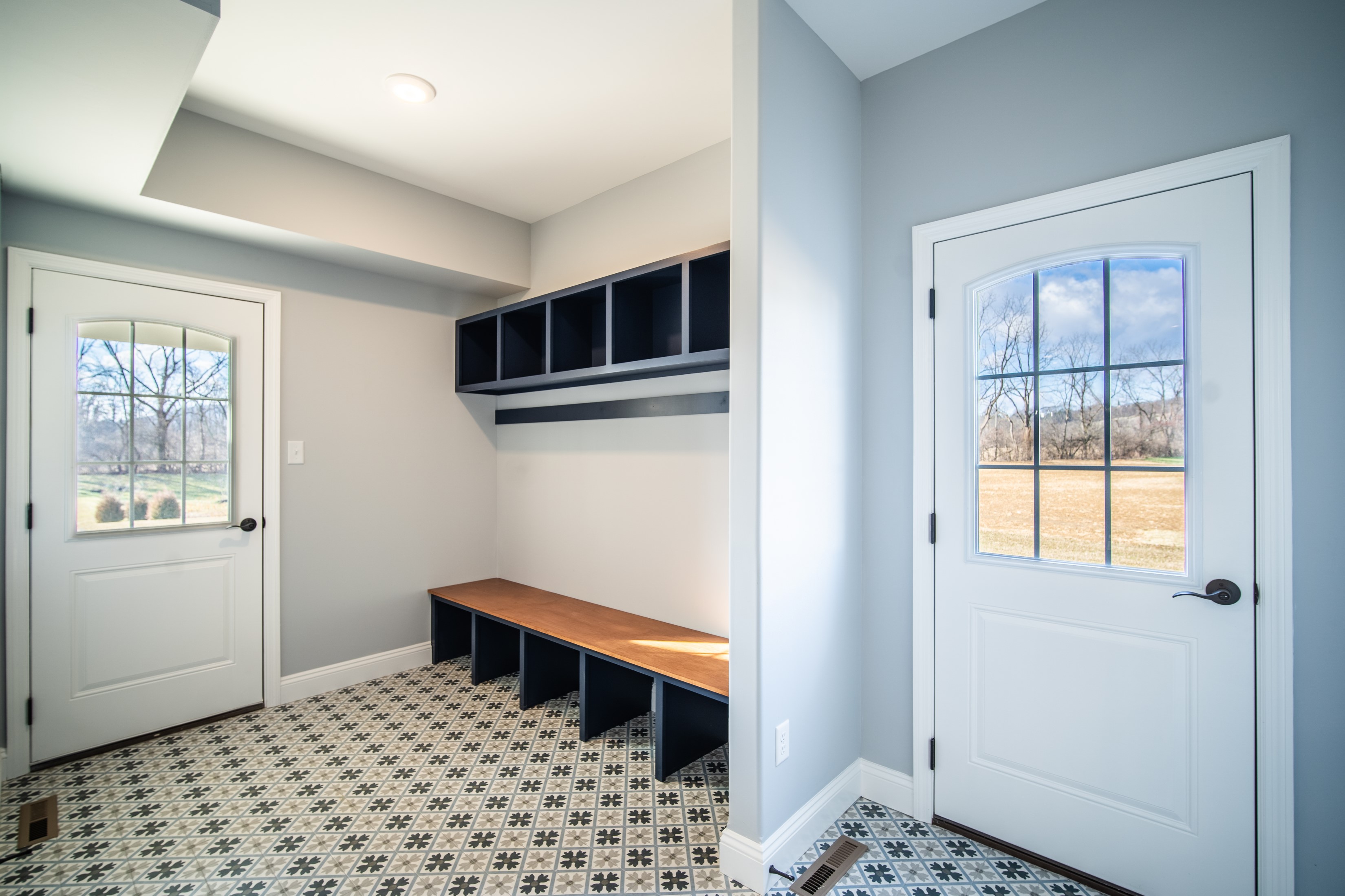 Mudrooms have a secondary entrance and function as a place to remove and store your soiled shoes, outerwear, umbrellas & more before entering the home. Keeping the mess/clutter out of your home.